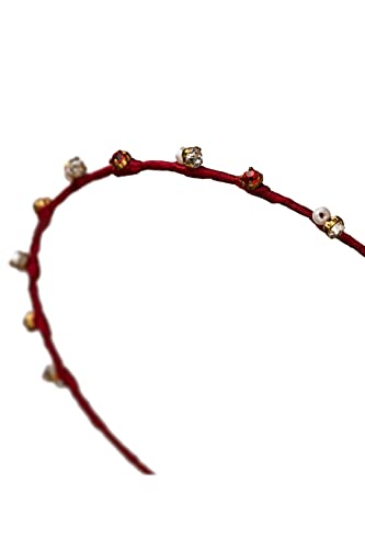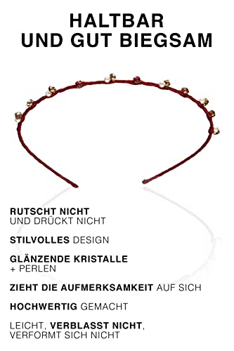 Cerchietto per capelli sottile con perline e strass, accessorio per capelli, colore rosso bordeaux