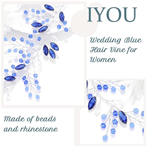 IYOU Cerchietto per capelli da sposa in cristallo blu con vite e perline per capelli da sposa e damigella d'onore accessori per capelli per le donne