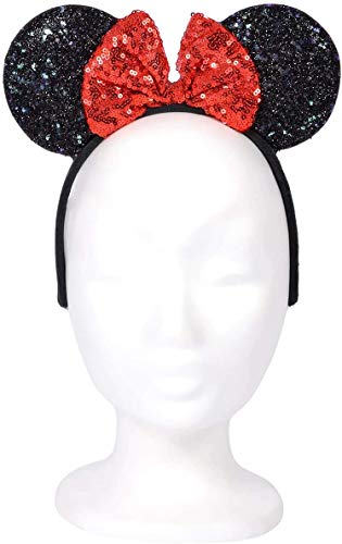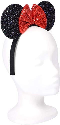 Cerchietto minnie compleanno per capelli bambina Cerchietti nero con orecchie di Minnie Mouse con fiocco rosso con pois bianchi per bambini e adulti