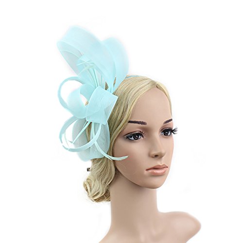 Cerchietto con Piuma di Capelli e Cappello Partito Festa Donne Sposa Fascinator Cappello per Accessori di Cerimonia Nuziale del Cocktail (Blu Chiaro)