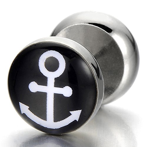 10MM Cerchio Orecchini con Ancora da Uomo, Finto Dilatatore Fake Plug, Acciaio Inossidabile, 1 Paio