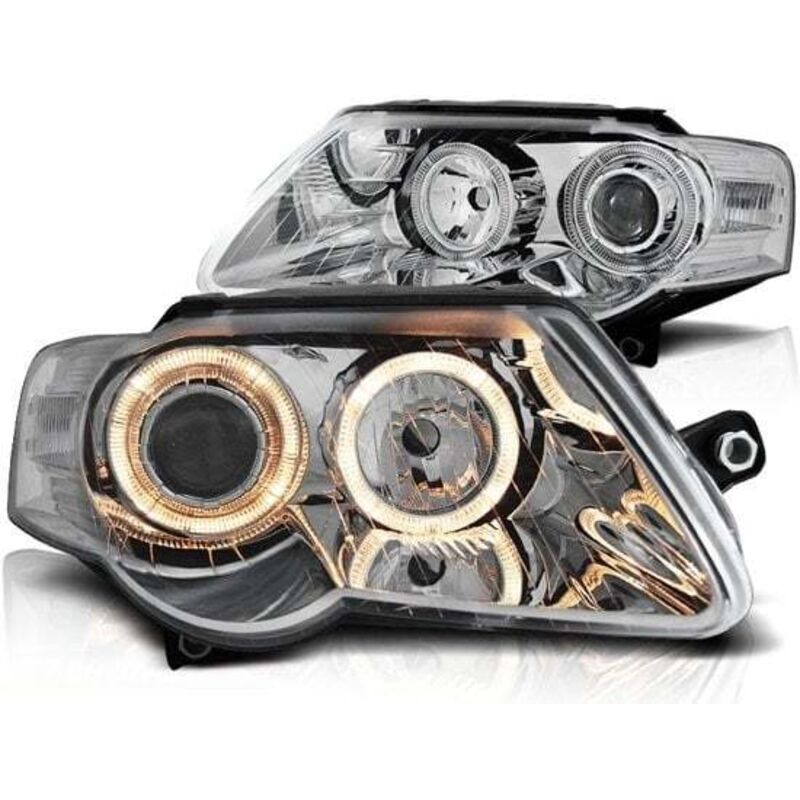 Fari a proiettore con cerchi a doppio alone. Set, per coppia (sinistra e destra) Omologazione: E-marked - approvato per l'omologazione stradale. Possibilità di passare da guida a sinistra a guida a destra. Particolari: Luce di parcheggio: cerchi Halo Anabbagliante: H7 non incluso Abbagliante: H7 non incluso Regolazione: elettrica (con controller elettrico incorporato) Angel Eyes guida a destra/guida a sinistra Informazioni su questo prodotto Questo prodotto è stato sviluppato appositamente per il mercato del tuning. Nella nostra linea di prodotti troverai articoli per l'illuminazione e la carrozzeria. In tutti i nostri prodotti mettiamo la serie degli anni di fabbricazione nel titolo e/o nella descrizione. Al momento dell'ordine è importante verificare se la vostra auto rientra nella fascia degli anni di costruzione indicati. Se la versione della tua auto è importante (ad esempio Sedan o Hatchback);