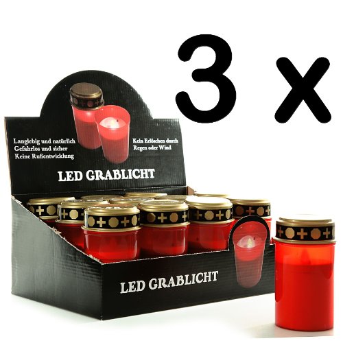 Cerino Led, durata circa 300 ore, alimentazione a batteria, 3 pezzi