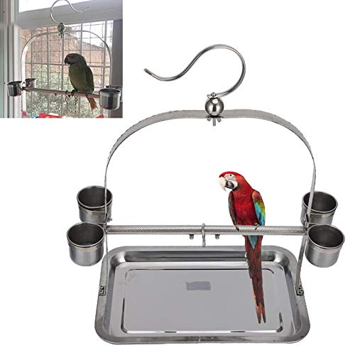 Cerlingwee Supporto per pappagalli, Supporto per Uccelli Portatile in Metallo con posatoio per Uccelli, Piccoli Uccelli per cacatua inseparabile