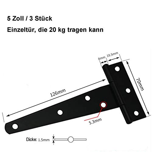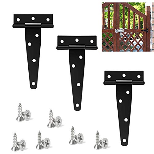 Zaky Cerniera a T Cerniere Della Porta per Porte in Legno Cardini(Nero 3 pezzi/Contiene 21 viti)