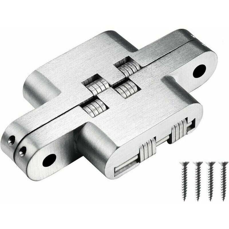 Prodotto squisito: il corpo principale delle cerniere a croce nascosta è realizzato in lega di zinco e lamiera d'acciaio laminata a freddo, la superficie è nichelata, resistente alla corrosione, non facile da arrugginire;