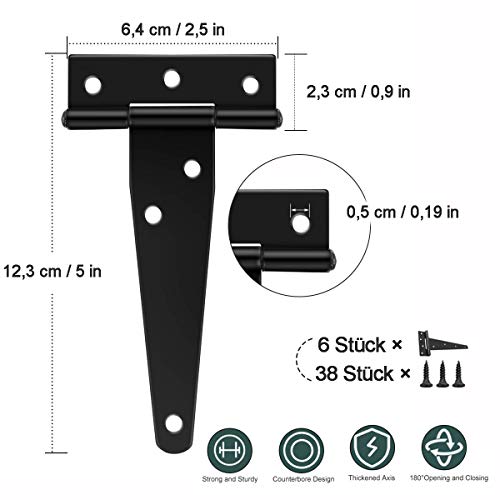 Cerniera a T, 6 Pezzi di Cerniere in Acciaio Inossidabile Per Porta, Finestra, Armadio, Cassetto con 38 Viti