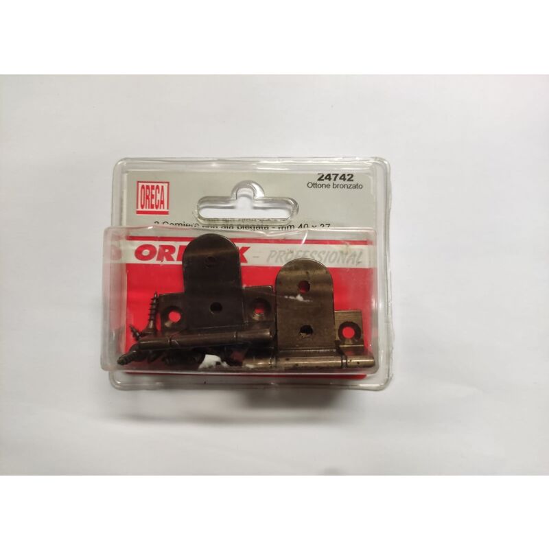 Oreca - cerniera con ala piegata in ottone bronzato 40x37mm p2
