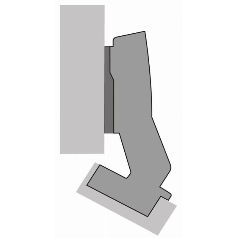 Dettagli: Cerniera automatica con tecnologia clip-on e ammortizzazione integrata Classificazione di qualità secondo EN 15570, livello 3 Per gli armadi ad angolo, angolo del mobile 120 Per spessori di porte da 15 a 28 mm Diametro della tazza 35 mm Profondità della tazza 12,8 mm Regolazione integrata della sovrapposizione ± 2 mm / - 2 mm Regolazione della profondità integrata + 3 mm / - 2 mm Regolazione dell'altezza tramite piastra di montaggio Materiale del braccio della cerniera: zinco pressofuso nichelato Materiale della coppa della cerniera: acciaio nichelato