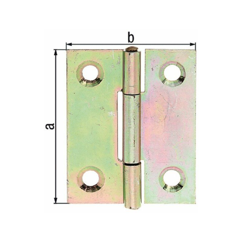 Versione: mezza larghezza con perno rivettato in acciaio inossidabile Altre caratteristiche tecniche: · Superficie: zincato giallo zincato · Numero di fori: 4 · Misura a: 41mm · Dimensione b: 33mm