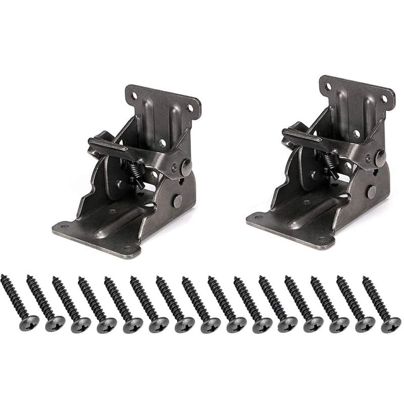 DESIGN UNICO - : Cerniera autobloccante Design strutturale robusto, ogni staffa può contenere una capacità di 500 libbre, funzionare bene e stabile [QUALITÀ ECCELLENTE]: Cerniere con colore nero+bronzo, ferramenta in acciaio inox. L'intervallo di curvatura è compreso tra 0 e 90 gradi. Si prega di installarlo completamente prima dell'uso. [VERSATILE]: La staffa pieghevole è adatta per gambe di tavoli mobili, letti pieghevoli in legno, letti in ferro, tavoli da pranzo, piattaforme fai-da-te e altri, può essere utilizzata anche come staffa invisibile [FORTE CAPACITÀ DI CARICO]: L'angolo massimo della cerniera è di 90 gradi e il perno di 90 gradi si blocca automaticamente, garantendo un'elevata capacità di carico e resistenza alla trazione. [FACILE DA INSTALLARE]: Cerniera pieghevole 20 viti (M4 x 20 mm) incluse, facilita l'installazione e richiede solo pochi minuti