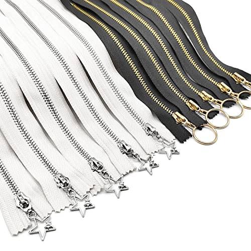 ✿✿ Cerniera in metallo a 2 colori: nero/bianco 2 colori di base lunghe chiusure lampo colorate soddisferanno le tue esigenze per diversi progetti di cucito. Una buona scelta per i principianti del cucito, crea la tua piccola borsa da cucito e una borsa da viaggio in tela con le cerniere della borsa artigianale.