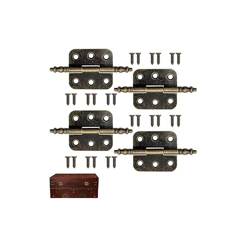 Materiale in ferro resistente: la cerniera per mobili vintage è realizzata in ferro di alta qualità, resistente e durevole, non facile da deformare o rompere. La superficie è rivestita con ottone anticato, che ha le caratteristiche di anticorrosione e antiruggine e ha una lunga durata.Si abbina perfettamente alle tue diverse porte. Stili semplici e colori strutturati sono adatti a vari stili di casa, aggiungendo un tocco artistico retrò ai tuoi mobili. Cerniere pieghevoli: le cerniere per portagioielli hanno una certa capacità di carico, possono ruotare di 270 gradi, si consiglia per regolare l'angolo che vuoi aprire prima dell'installazione, in modo da non scricchiolare quando apri o chiudi la porta Facile da installare: ti aiuteremo a fornire 4 vecchie cerniere e 20 viti. La cerniera ha sei fori di montaggio distribuiti uniformemente, puoi serrare le viti corrispondenti per fissare la cerniera in ferro bronzo dopo aver regolato lo spazio tra l'anta e la cerniera Ampia gamma di usi