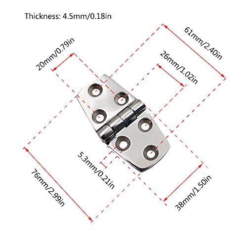 Ampio utilizzo: è possibile utilizzare liberamente questi hardware a cerniera su siti diversi in quanto è altamente resistente alla corrosione. Ampiamente usato nell'industria marina per coperchi, portelli, scomparti, porte o tavoli, finestre in casa e uffici.