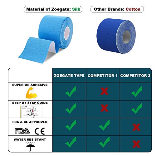 Cerotti Kinesiology Tape, Zoegate kinesiologia tape Kinesio Taping Sport Terapeutico per Ginocchio Spalla Gomito Caviglia e collo - impermeabile superiore e adesivo - aumenta le prestazioni, riduce la fatica e ti aiuta a recuperare più velocemente da lesioni da Sport ed atrletica - senza lattice - approvato FDA & CE