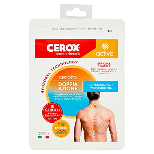 CEROX ACTIVE, Cerotto Doppia Azione, Protegge da Dolori Reumatici e Muscolari, con Mentolo, 1 Busta Richiudibile da 5 Cerotti