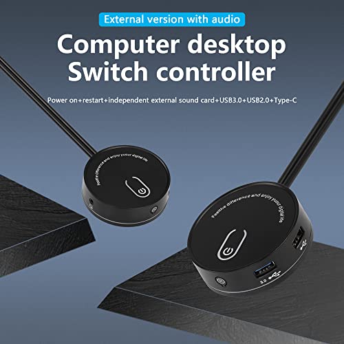 Regolatore multifunzionale dell'interruttore desktop, supporta la trasmissione dei dati, avvio/riavvio di un solo pulsante, con interfaccia audio da 3,5 mm, se il computer è posizionato in un'area difficile da raggiungere o il pulsante è danneggiato, può essere salvato spostando l'interruttore sul desktop