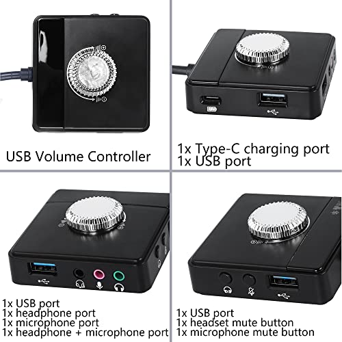 CERRXIAN Controller del volume USB, Hub USB con adattatore audio, muto a un pulsante, manopola multimediale, con jack per microfono per cuffie da 3,5 mm+porte USB 2.0+porta di alimentazione di tipo C
