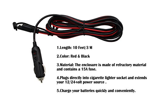 Cerrxian - Cavo di ricarica / prolunga da presa accendisigari 12 V a connettore SAE a sgancio rapido, con fusibile e indicatore a LED, impermeabile