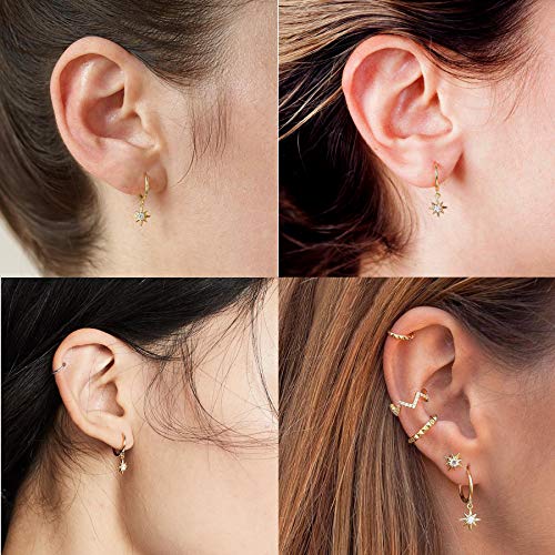 Materiale di alta qualità: la confezione contiene 2 paia di piccoli orecchini a cerchio in oro con ciondolo a forma di luna e stella. I perni sono in argento sterling 925, ipoallergenici, la scelta migliore per le orecchie sensibili. Ottone di alta qualità e placcato oro 10 K con zirconi AAA, senza nichel e brillanti.