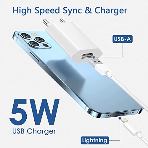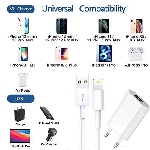 Certificato MFi - Caricatore iPhone, iPhone USB Rapido Caricabatterie con 2 Pack Caricabatterie USB da Muro e 1M Cavo da Lightning per iPhone 14/14 Plus/14 Pro/14 Pro Max/13/12/11/X/8, iPad