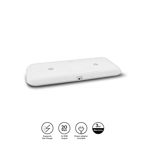 ZENS Qi Certified Dual Wireless Fast Charge Pad 2x10W bianco, supporta la ricarica veloce senza fili fino a 10W - Funziona con tutti i dispositivi di ricarica wireless