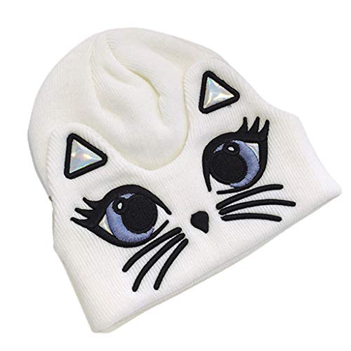 Certylu Cappello Normale, Berretto con Risvolto in Maglia Calda Invernale da Donna Cappello con Teschio di Neve con Ricamo Gatto Occhi Grandi