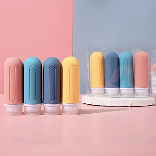 Colori vivaci e facili da pulire: il colore include rosa, giallo, blu, azzurro. Bottiglie da viaggio, con una capacità di 90 ml per bottiglia, puoi portarle quando sei in aereo. Le bottiglie in silicone sono facili da pulire dopo l'uso.