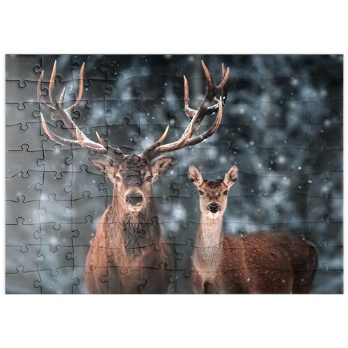 Cervo E Cerva Nella Mistica Foresta Di Neve Invernale - Premium 100 Pezzi Puzzle - MyPuzzle Collezione speciale di Puzzle Galaxy