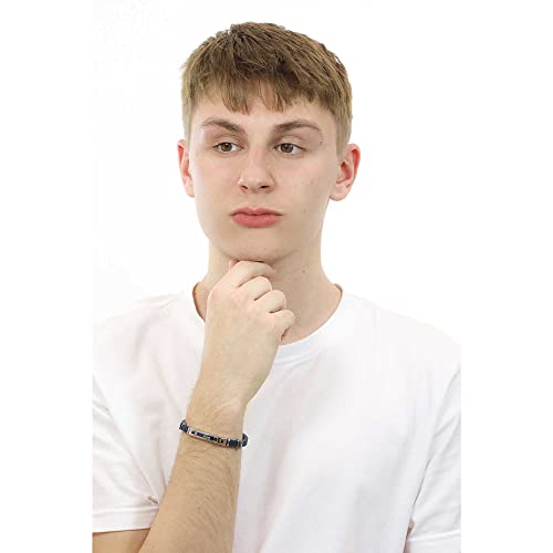 4US Cesare Paciotti Bracciale da Uomo Bracciale Realizzato in Silicone Blu e Acciaio Placcato Blu con Targa Centrale logata. Diametro: 7cm. La referenza è 4ubr4448