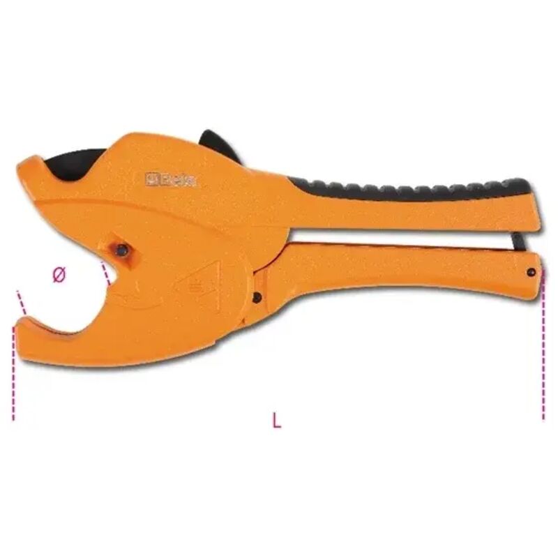 Cesoia a cricchetto per tubi in materiale plastico con corpo in lega di magnesio Leggerezza e resistenza lama a scomparsa con sistema CRL (cambio rapido della lama) Progettazione ottimizzata della leva per ridurre lo sforzo di taglio Ø mm: 0÷50 L mm: 260 Peso g: 450