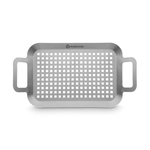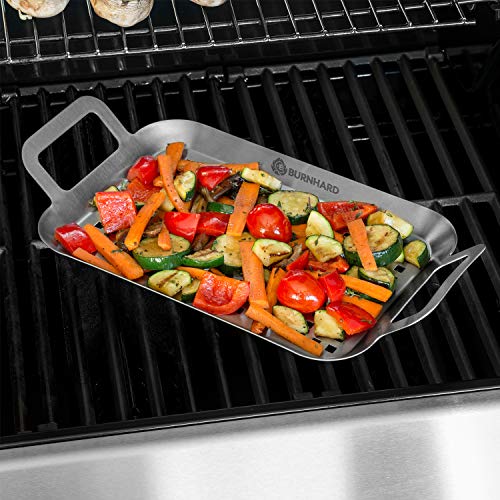 Cestello per barbecue in acciaio inox 28x19 cm, Teglia per Grill Perforata Dotata di Manici, per Barbecue a Gas o a Carbone