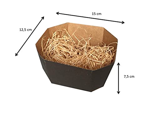 SET 30 Cestini di Cartone kraft, scatoline aperte per confezioni, bomboniere, packaging regalo, cestino natalizio o pasquale 3 MODELLI (10 pezzi x tipo) con 250 gr paglia in legno finissima