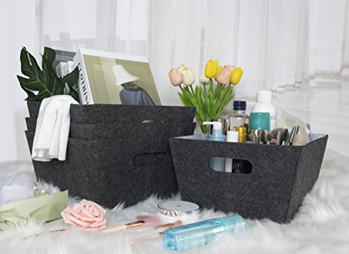 Cestini Portaoggetti in Feltro, Cestino Portaoggetti Ispessito, Cesto Portaoggetti Pieghevole, Scatola Portaoggetti per la casa o l'ufficio (Nero-Grigio, 1 Pezzi)