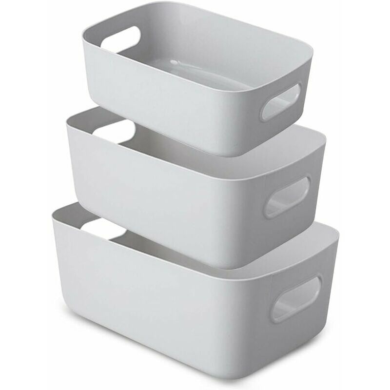 Un set di 3 contenitori - cestini in plastica per cucina, casa, ufficio e bagno. (Piccolo, medio, grande) abbastanza per soddisfare le tue esigenze di archiviazione.,Materiale durevole - Il cestino portaoggetti è realizzato in materiale PP di alta qualità, che può resistere efficacemente a macchie e odori. È atossico, insapore, resistente, leggero e può essere utilizzato per molti anni.,Design unico con parte superiore aperta: questa scatola di immagazzinaggio adotta un design con parte superiore aperta, che è facile da usare. Compresa la maniglia, puoi usarla per spostarla facilmente da un posto all'altro.Grazie al suo design sottile, puoi posizionare una serie di oggetti in questa scatola di plastica. Grande capacità - La scatola portaoggetti ha il caratteristiche di piccole dimensioni e grande capacità. Cosmetici, condimenti da cucina, utensili da cucina, documenti d'ufficio, giocattoli per bambini e altre necessità quotidiane possono essere posizionati per ridurre il
