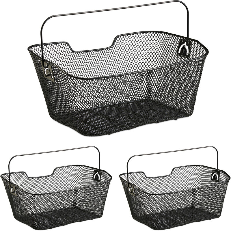 Con questo capiente cestino da bici potrete trasportare la spesa e altri oggetti senza bisogno dell'auto. Ma il cesto è adatto anche per gite al mare o in montagna. Vi si potranno mettere borse, giacche o piccole spese e, grazie al suo design in nero, sta bene su ogni tipo di bicicletta. Per fissare il cesto metallico alla bici non è necessario alcun attrezzo. Basta semplicemente agganciarlo al portapacchi. Inoltre, può essere rimosso in ogni momento e si può trasportare anche a mano tramite il pratico manico. Cestino per bici in dettaglio - Misure HxLxP: 19 x 41 x 30 cm ca. - Peso: 750 g ca. - Capacità di carico max.: 7 kg - Materiale: acciaio - Colore: nero - Set da 3 Pratico cesto da bicicletta per il portapacchi - Facile fissaggio senza montaggio - Si può sganciare e usare come cesto per la spesa - Pratico manico per il trasporto a mano - Per borse, giacche, coperte da picnic o piccole spese - Maglie strette per evitare che gli oggetti cadano a terra Contenuto della confezione