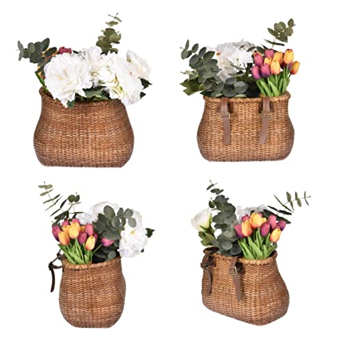 Cestino per bicicletta anteriore Cestino per bici in vimini intrecciato Cestino per bici con cintura in pelle per accessori bici