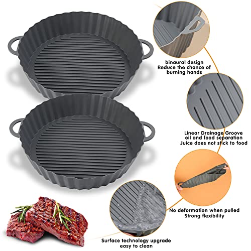 Cestino per Friggitrice ad Aria in Silicone, 2 PCS Cestello in Silicone per Friggitrice ad Aria, Teglie Per Friggitrice Ad Aria, Reusable Silicone Pot, Cestello di Ricambio Rotondo per Friggitrice