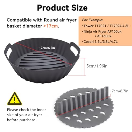 【Mantieni la friggitrice ad aria pulita e facile da pulire】: gli accessori perfetti per la friggitrice ad aria evitano che il cestello si ingrassi e nessun residuo. Mantieni i lati e il fondo della friggitrice ad aria quasi puliti. I nostri rivestimenti rotondi in silicone Airfryer sono morbidi e flessibili. Capovolgere e pulire con una spazzola con acqua tiepida e sapone per i piatti sarà più facile rimuovere unto e residui. È anche lavabile in lavastoviglie.