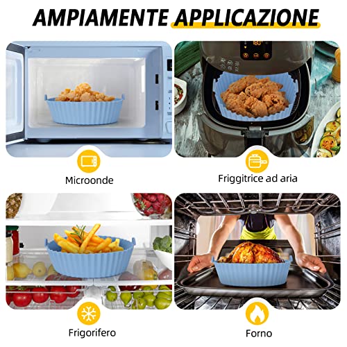 21cm Cestino per Friggitrice ad Aria in Silicone, Riutilizzabile Accessori per Friggitrice ad Aria con pennello ad olio Teglie per Friggitrice ad Aria Adatti per forno ad Aria, Forni Microonde