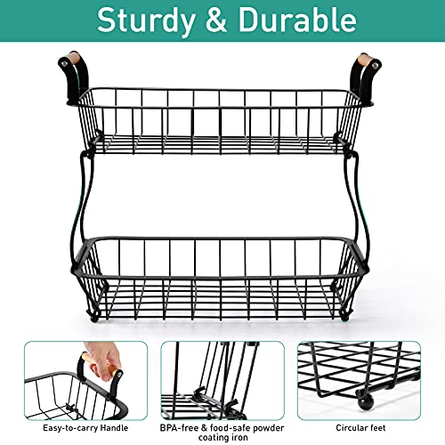 【Materiale durevole e struttura stabile】 Realizzato in ferro battuto antiruggine con rivestimento in polvere privo di BPA e sicuro per gli alimenti. Ogni cesto ha 4 piedini circolari che tengono i frutti lontani dalla scrivania sporca e forniscono un ottimo supporto equilibrato.