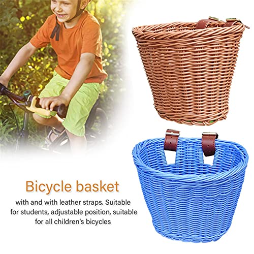 Cestino della bici del manubrio anteriore dei bambini, cestino della bici a forma di D vimini, cestino anteriore della bici tessuto a mano Cestino della bicicletta vimini con cinghie cuoio regolabili