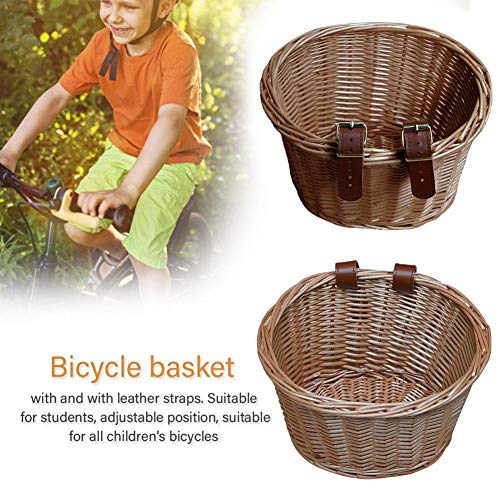 Cestino della bici del manubrio anteriore per bambini, Cestino della bici tessuto a mano regolabile cintura portatile, Cestino della bici del manubrio anteriore in vimini, Cestino del manubrio