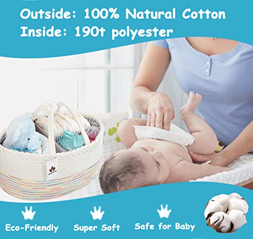 Cestino per pannolini per bambini, grande cesto in corda di cotone con scomparti intercambiabili, borsa da viaggio portatile per neonati, cestino da doccia per bambini (arcobaleno)