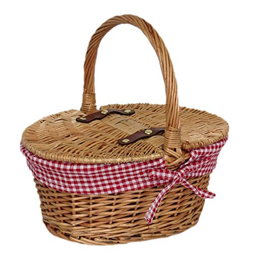 Cestino da picnic in vimini con coperchio ovale per bambini, colore rosso