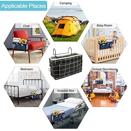 Cestino Portaoggetti da Appendere Tasche da Letto Appendibile Borsa da Comodino per Organizer Sospesa Portaoggetti da Letto Appendibile Accessori per Casa Ufficio Scuola Dormitorio (Griglia Nera)