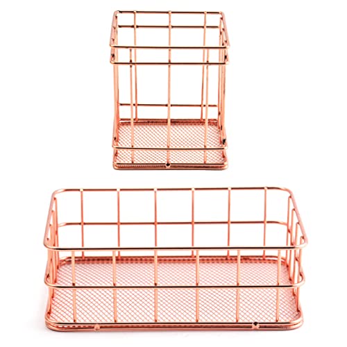 Cestino Portaoggetti In Oro Rosa, Cestello Portaoggetti in Ferro Battuto, Cestino Portaoggetti da Scrivania in Rete Metallica Oro Rosa, per Bagno Camera da Letto Ufficio Cucina e Altro (2 Pezzi)