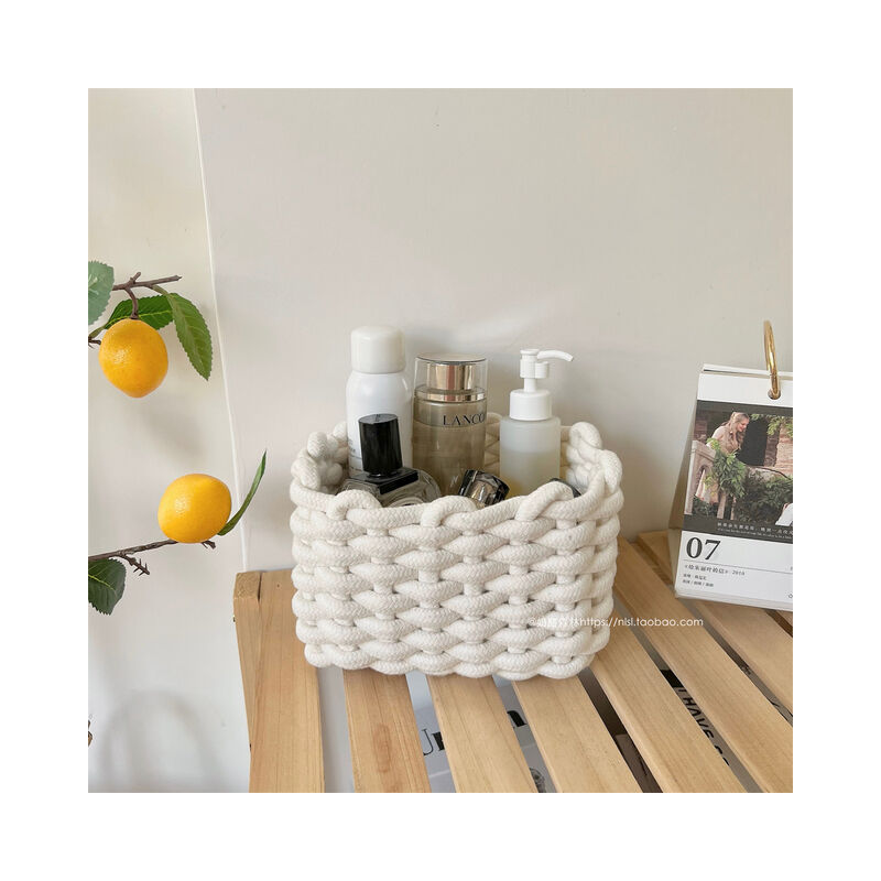 Cestino portaoggetti in corda di cotone intrecciato cestino portaoggetti fatto a mano per decorazioni per la casa pennello per trucco da Picnic organizzatore per articoli vari da tavolo,S White