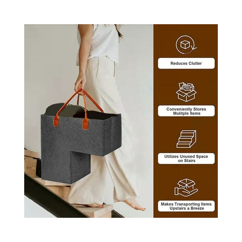 Descrizione: Riduci il disordine: posiziona il fondo del cestello o alle tue scale, versatile stoccaggio per oggetti che necessitano di andare giù per le scale su/giù.Stoccaggio innovativo: il nostro innovativo cestino per scale di stoccaggio si trova perfettamente in scala. È un modo brillante per utilizzare lo spazio inutilizzato!Materiale PREMIUM: realizzato in materiale di feltro, il nostro cestello per scale è morbido ma resistente e si adatta facilmente a oggetti delicati o più articoli voluminosi. Preoccupazione per i tappeti strappati o le scale in legno graffiate, che vengono cesti di vimini.Manici robusti: progettati per il comfort e, i nostri manici in ecopelle ti consentono di tote things senza sforzo su e giù per le scale con.Ampia applicazione: questo cestino portaoggetti giocattoli, asciugamani, cesto, cuscini, vestiti, biancheria da letto e adotta oggetti di grandi dimensioni. Specifica: Materiale: pelle di stoffa in feltro Tabella di formato: Lunghezza inferiore