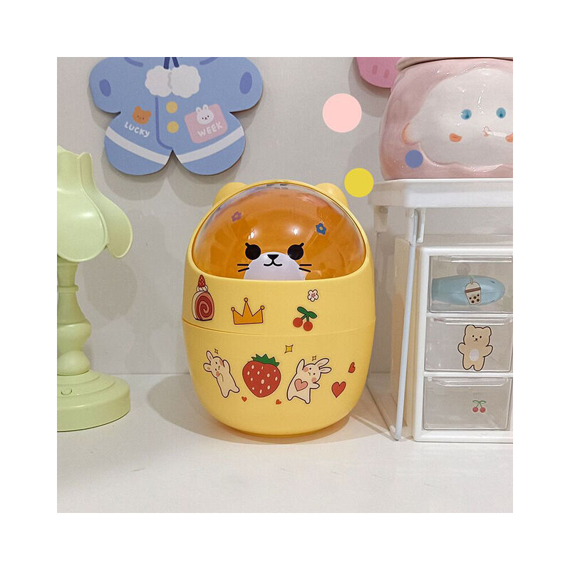 Cestino da tavolo simpatico orso cestino per rifiuti organizzare con coperchio Mini portatile camera da letto dormitorio portapenne secchio portaoggetti con Flip Top Materiale: PS Colore: bianco/rosa/giallo/blu/grigio Formato: 11*15.5 centimetri 1. Perfetto per Desktop: Mini size consente di risparmiare spazio. Ideale per tavolo da ufficio, controsoffitto da bagno e altro 2. Uso Multi-scena: non solo cestino da tavolo di bell'aspetto, ma anche un tavolo da tè per animali domestici, scrivania, toletta e comodino con te, puoi rondeggiare tutta la tua infelicità con un pulsante di avvio della luce. 3. Materiale: plastica ecologica, non tossico e insapore. Guscio in materiale di alta qualità, leggero e resistente, non facile da sporcare. 4. Cover: questo prodotto può isolare l'odore particolare, premerlo per rimbalzare e poi premere per chiudere per evitare che la spazzatura venga scaricata. 5. Aspetto unico e carino: aspetto originale, vivido e interessante, è una bella decorazione in